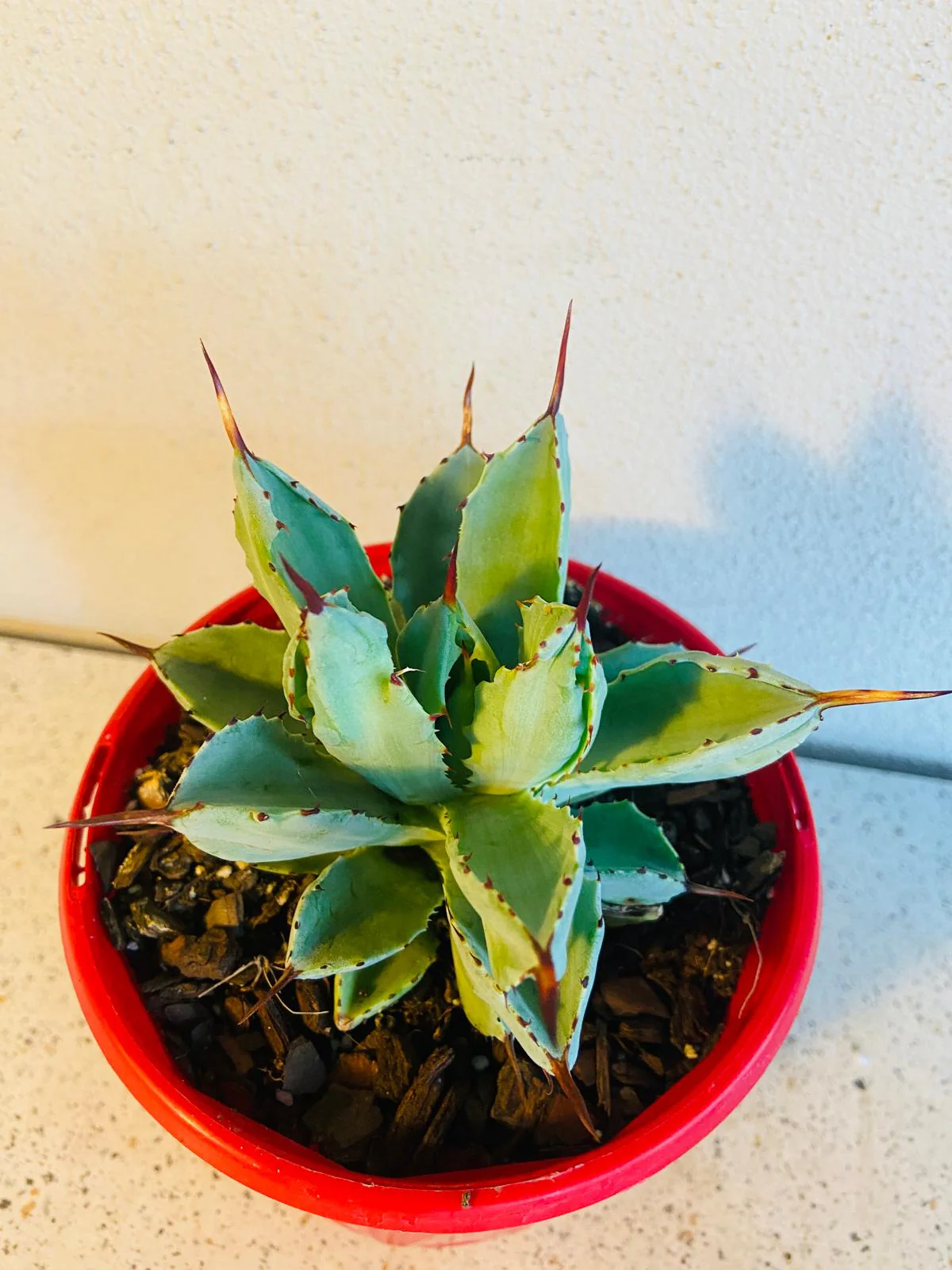 The "Cv. Cubic" cultivar of Agave potatorum is a unique form of the plant that has been selectively bred or grown to have a more geometric, cubic shape. This can be achieved by carefully pruning or training the plant, or by selecting plants with naturally more compact growth habits. Cultivated varieties of agave plants are often prized for their unusual shapes or striking coloration.