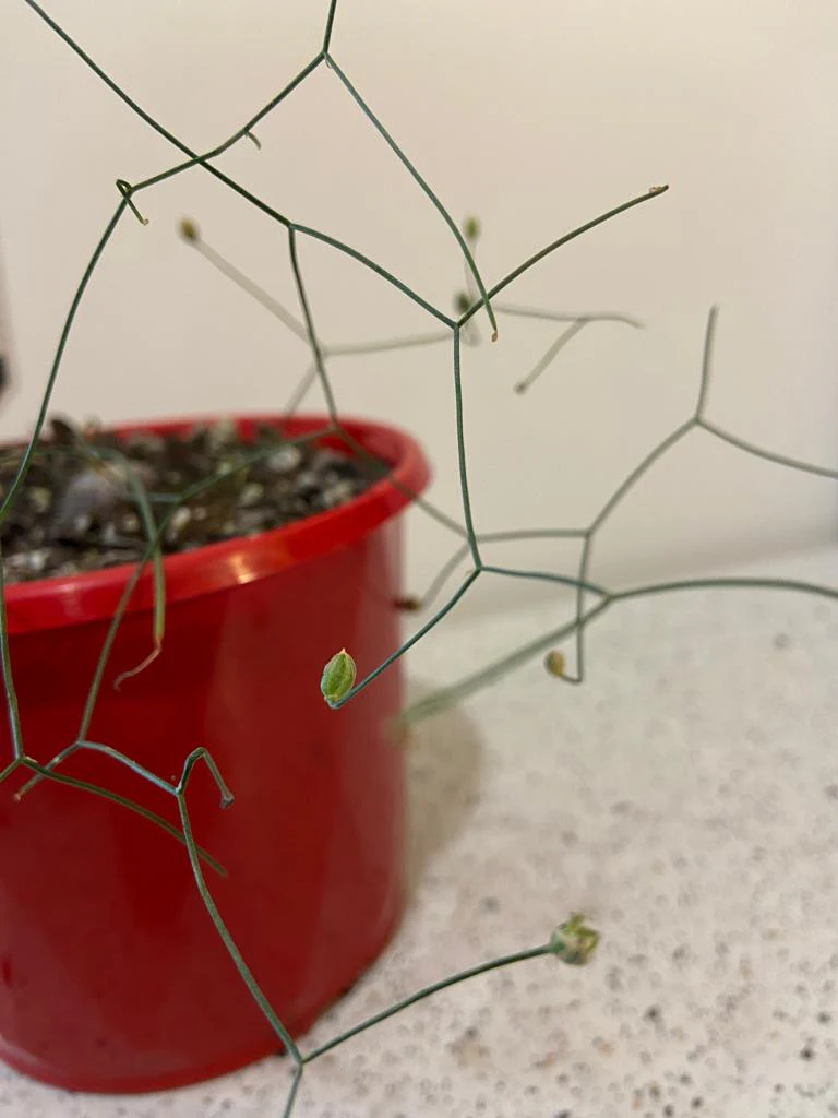 Leaves: Thin, wiry, often curly or interlaced, appearing in intricate patterns