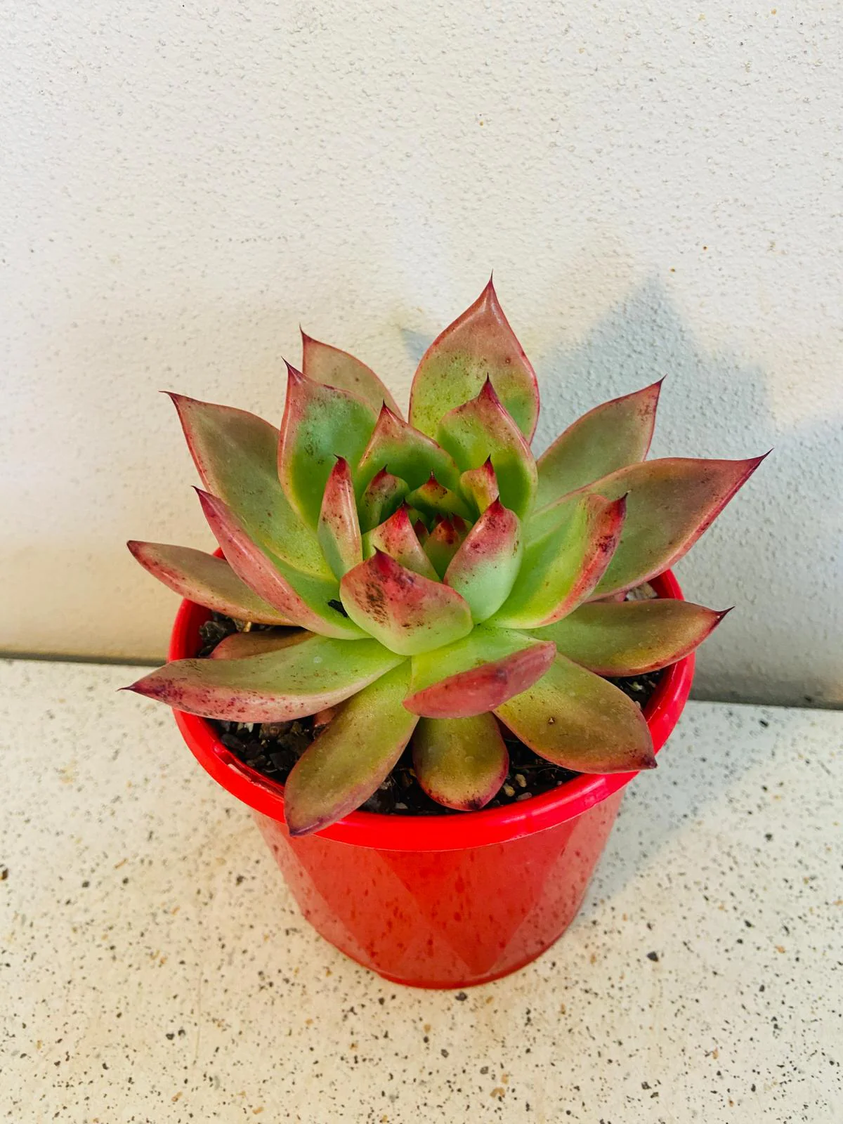 The succulent plant housed in the red pot comes in a 130mm diameter container. While the image provides a representative depiction of what you will receive, but may vary slightly because no two succulents are the same.