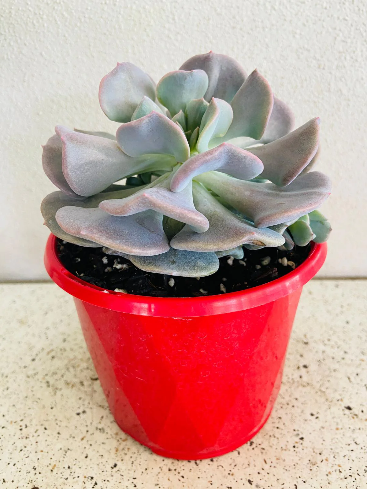 The succulent plant housed in the red pot comes in a 130mm diameter container. While the image provides a representative depiction of what you will receive, but may vary slightly because no two succulents are the same.