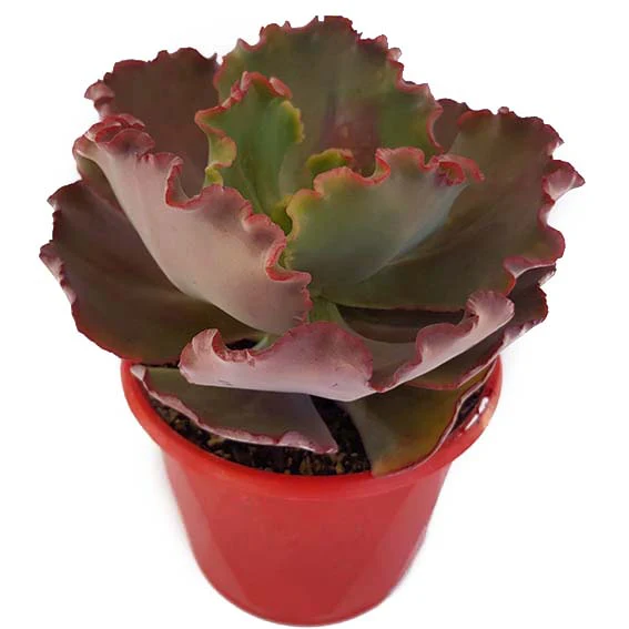The first two photos serves a display purpose only. The succulent plant housed in the red pot comes in a 130mm diameter container. While the image provides a representative depiction of what you will receive, but may vary slightly because no two succulents are the same.