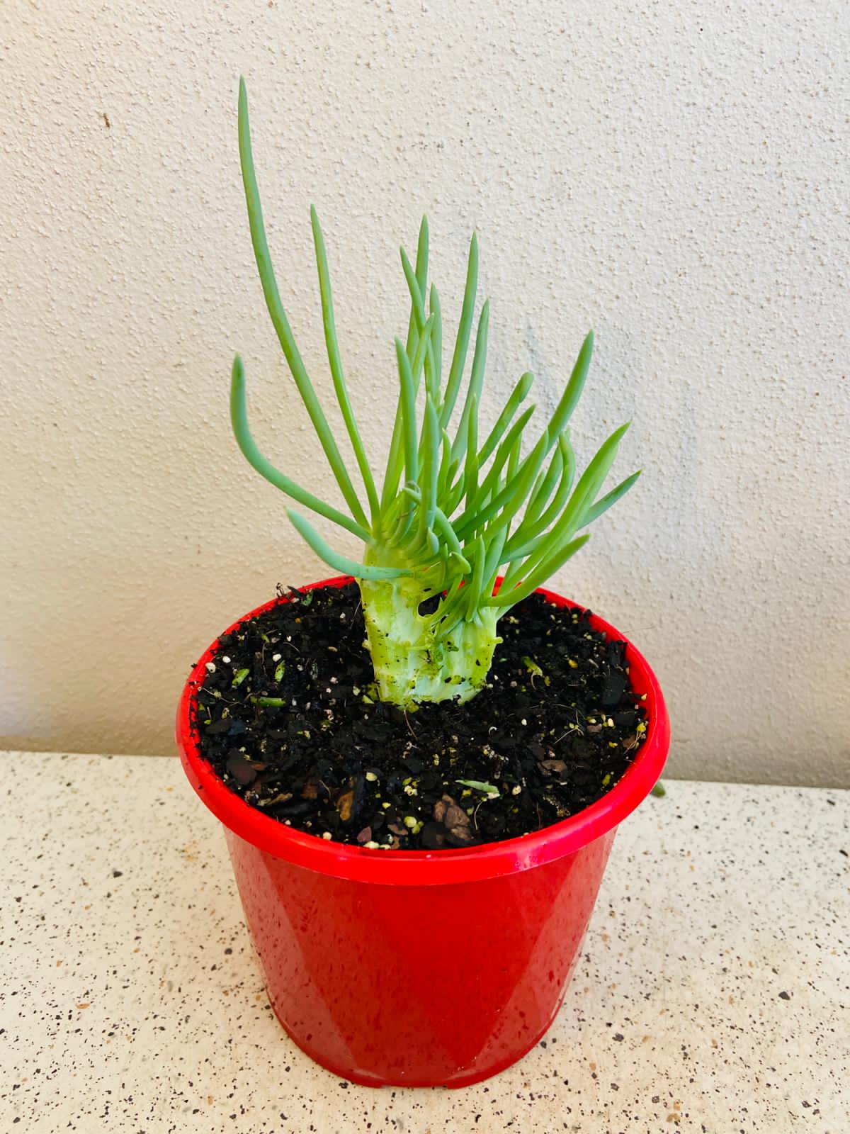 Easy to care for and drought-tolerant, it thrives in bright, indirect sunlight and well-draining soil. Its soft green stems and elegant trailing habit add texture and movement, transforming any space into a lush, botanical display.